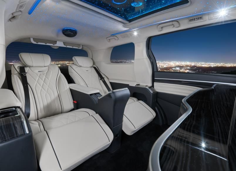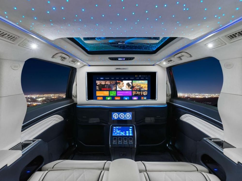出门在外,它就是一间专属“VIP私人移动会所”。 新车的二排豪华座舱,采用高级雾化隐私玻璃,分隔驾驶舱和后排空间;全新星空顶玻璃天幕设计,将星空装进车里,让后排贵宾能享受到满天繁星。加上34寸智能高清电视、智能冰箱、高质感小桌板等豪华配置,无论是车上办公还是休闲娱乐,都非常方便。