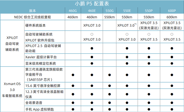 标榜全球首款搭载激光雷达的量产智能汽车的小鹏 P5,在特斯拉 Model 3 宣布降价 1.5万元进攻 25 万元以下市场的 7 月 30 日,在广州太古仓举行百变智能空间分享会活动,这款预售价位在 16-23 万区间的小鹏第三款车型,分为 460G、460E、550G、550E、550P、600P 等六款车型,4808mm/1840mm/1520mm 车身,轴距为 2768mm,分为磷酸铁锂电池(460km)和三元锂电池(550km/600km)两种电池类型,其预售开启后不到 7 小时就获得了 5000 订单,很可能成为小鹏下半年销量上涨的一大给力车型。