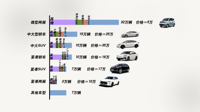 在杠铃型的电车销售市场下,15-25 万售价的纯电动车市场,还未出现真正的黑马,即使降价了 1. 5 万 的特斯拉 Model3,在 23.59 万元的价格下,也在试图杀进这一市场。这个区间的产品基本满足不了用户的潜在需求,充斥着太多套着燃油车马甲的纯电车型,而小鹏 P5 加上特斯拉 Model3 的进攻,我们有信心看到这一市场的热闹。