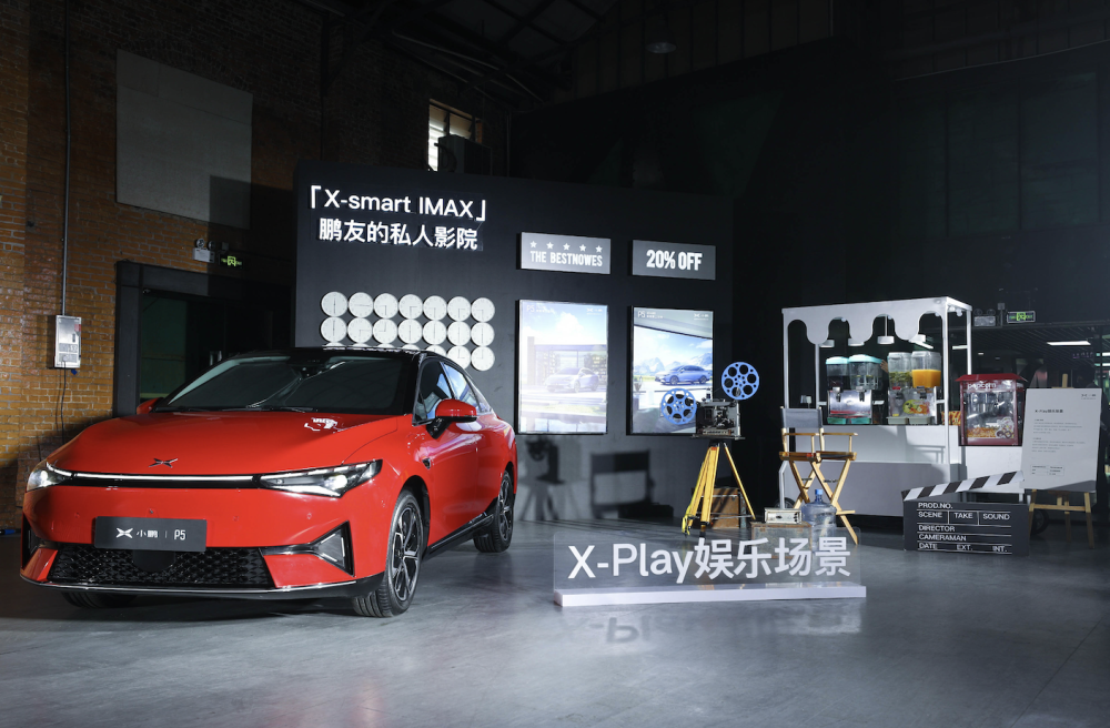 在 X-Play 娱乐场景上,小鹏 P5 内置有极米车载定制超清投影仪,能通过车载幕布,提供有线和无线双投屏,在配备杜比音效+DTS 上,辅以 Nappa 真皮 VIP 座椅、智能冰箱、智能香氛等,为用户在车内打造沉浸式移动影院。