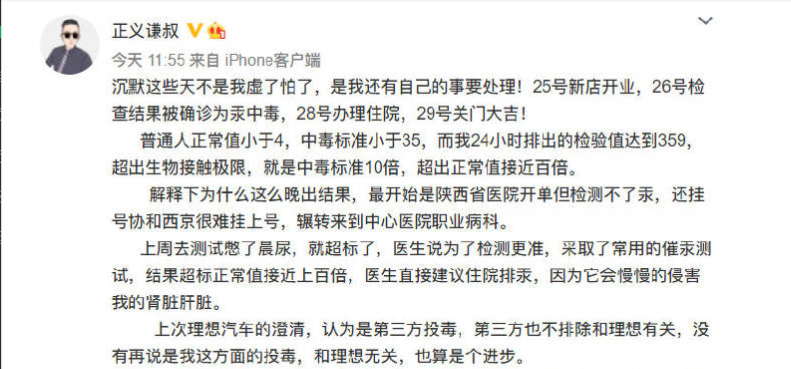 首先,从理想ONE水银没事件车主所发表的声明中可以看得出来,原本25号新店开业,而26号的检查结果被确诊为是汞中毒。所以,28号办理住院,29号就要关门大吉。真的是替这位车主感到惋惜。