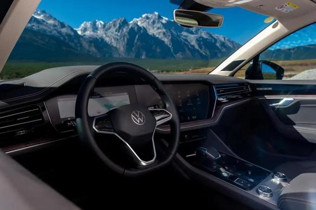 虽然途锐披着大众的外壳,但其实还是采用了和奥迪Q8、宾利添越、兰博基尼Urus等高端车型同出的MLB Evo平台,所以它骨子里生来就带有了高贵的气质。加之进口的身份,使得和国产大众相比,造艺的精致感确实是让人佩服。这种精致感在内饰的体现上尤为明显。比如主副驾配备的符合人体工程学的座椅,还有方向盘两侧触摸键的设置,以及旋钮按键的阻尼感,让你触碰到旋钮的感觉都是满满的精致感。甚至面前这两块液晶显示屏,看起来以及摸起来的质感都不错。整个内饰给你的第一感觉就是科技感很爆棚,就很奥迪了。