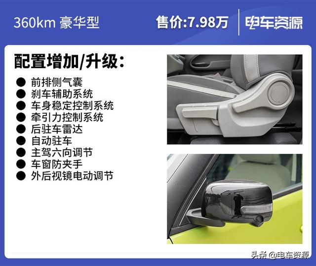 除此之外,长续航型的座椅材质也升级为仿皮,舒适性更高。如果要同时满足续航、配置、以及性价比,那么这款长续航型就是您的最佳选择。
