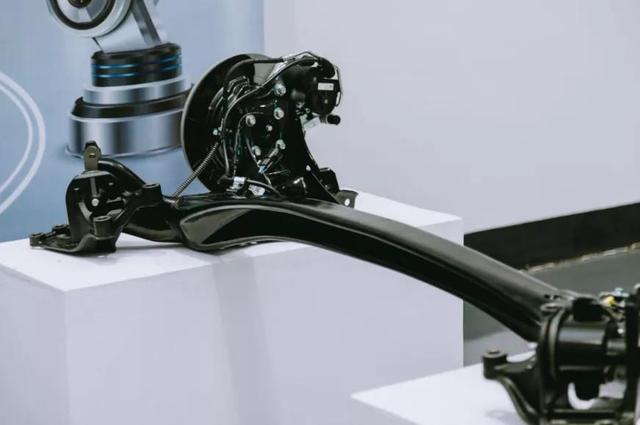 在底盘实验室时,工程师向我们全面展示了凯捷底盘的几个特点;第一,虽然因为考虑到后排空间与成本问题最终使用了扭力梁,但该扭力梁是采用高强度硼钢液压成型的封闭式异形后扭梁,相比于普通的扭力梁,它能提供更好的侧向支撑,同时帮助抑制车身的扭转。