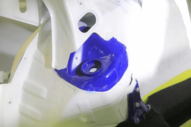 其中第一点就是提升车身白硬点的局部动刚度,简单的说就是在车体的横纵梁、侧围ABCD柱、前后悬挂安装点等地方用上强度更高的热成型钢或高强度钢,举例来说,像后悬挂与白车身的连接点处,凯捷就用了动刚度达到40000N/mm以上的高强度钢,大幅提高隔振性能。