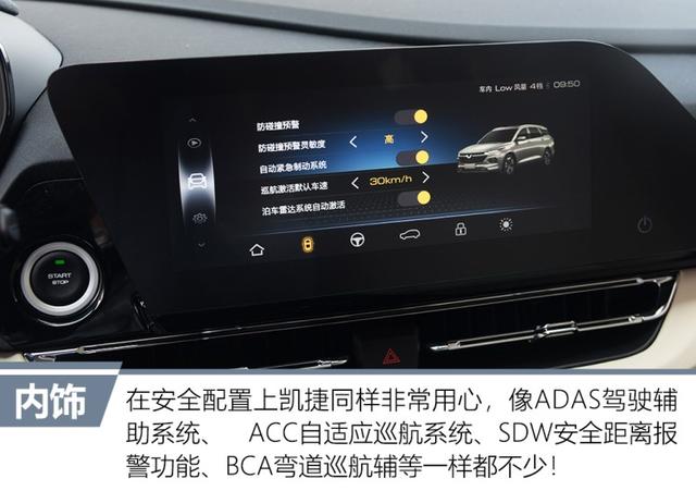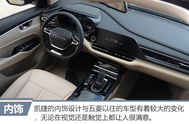 聊完了外观,我们再来看看这款新车的内饰怎么样!进入车内,凯捷给我的第一印象就是整体很清爽,双色搭配的设计风格很有层次感,给人耳目一新的视觉体验;同时在车内经常会触摸到的地方,它均采用了软质材料和皮革覆盖,很温馨也很有档次!