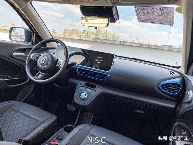 最后说说他驾驶感受了,这台车子的电池布局是位于底盘中间的,所以当你驾驶它的时候,会觉得车头非常的灵动,指哪打哪。是一台中置前驱车,底盘总体感觉会有些硬朗,但是它比起我之前试驾过的欧拉R1来说,舒适度提升了不少。总体的动力表现加速还是很线性的,不会有太强的推背感,但是这感受也比同级别1.5排量的小车加速要凌厉不少。这台车子的最高车速我们实际高速体验在107公里每小时。说明这台车子还是不适合高速长时间行驶的。