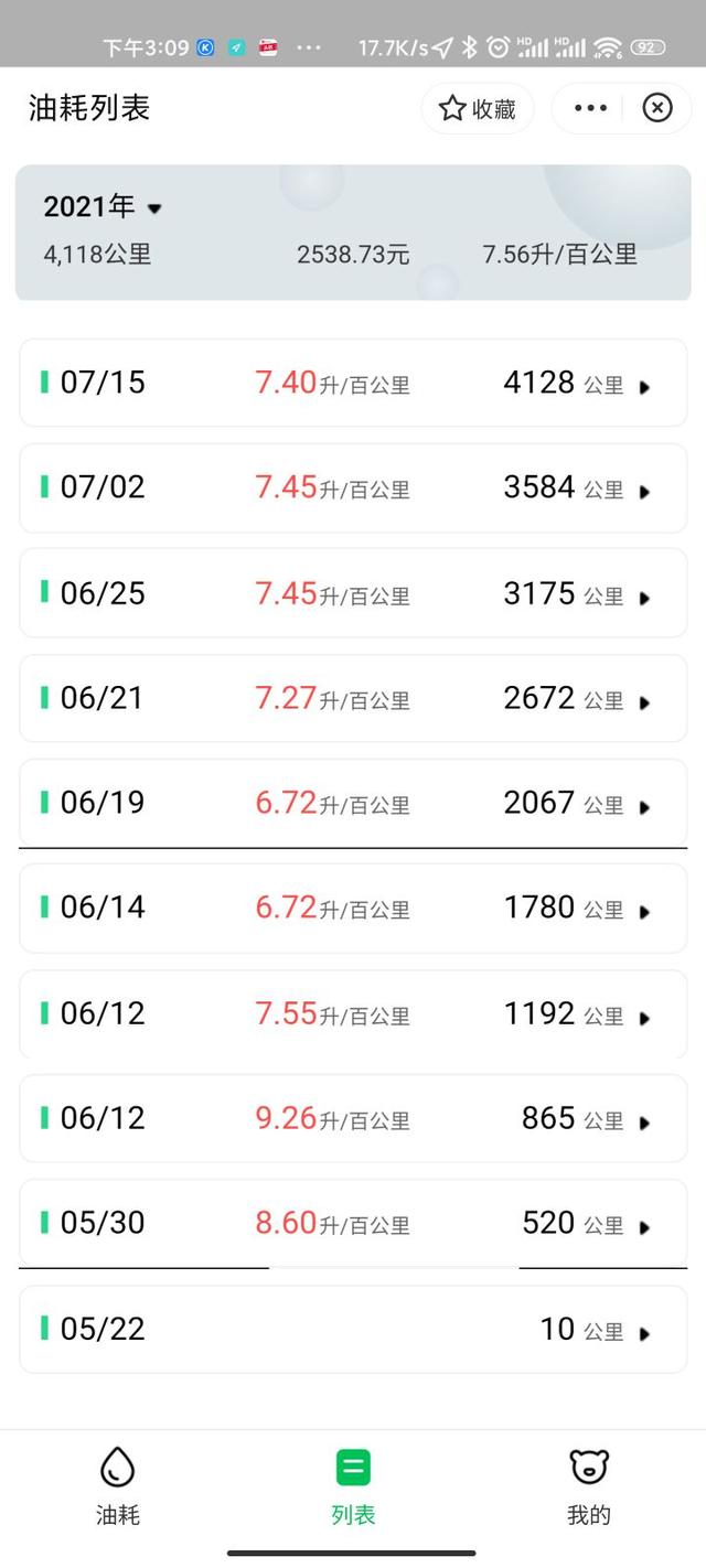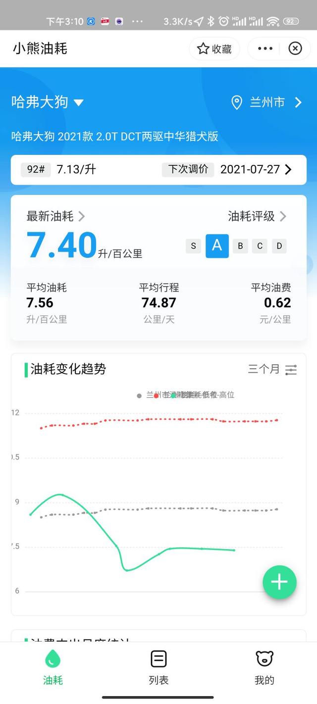7、重点是油耗问题,我的猎犬跑了4000多公里,我每次加油都记录多少钱加了多少升,详细大家看图片,整体油耗7.5个左右,加油花费2544元,昨天刚加了278的油还没跑,对于这个油耗还是比较满意。