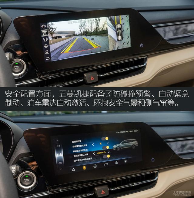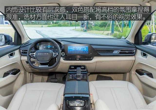 内饰设计在复杂与简洁之间找到了平衡点,让人觉得看似简洁实则层次感丰富。五菱凯捷提供两种内饰配色给消费者选择,分别为:米+黑搭配和全黑内饰,个人认为双色搭配的内饰更适用于家庭用户。配置方面也进行了升级,实拍车型配备了全景天窗、双10.25英寸的液晶屏、全景影像和智能驾驶辅助系统等。
