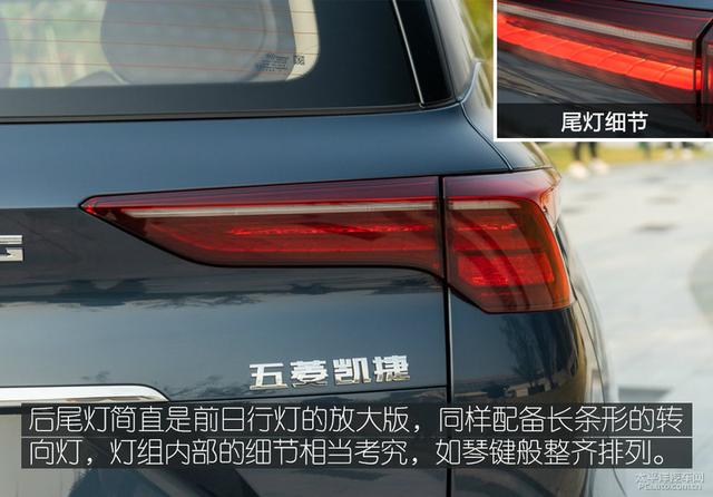 五菱凯捷基于全新的设计理念打造,利用线条展现出力量美,宽大的前格栅搭配五菱全球银标LOGO,格栅内部由多根镀铬件横向贯穿,如同猎鹰羽翼般富有层次感。还采用了隐藏式B/C/D柱设计,打造出悬浮式车顶的效果。而尾灯造型同样简约大气,使用了钻石切割多棱面的设计手法,美观而具有辨识度。