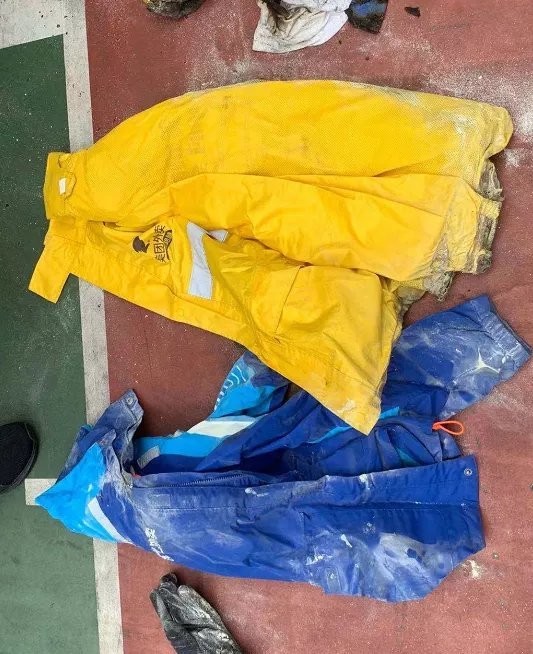 再看电动车的后车兜和中间夹层。大家打开后车兜,里面塞着叠好的两件蓝色黄色外套,以及一双厚手套。摊开一看,是两件尺码相同的外卖服装,应该是魏师傅之前做外卖员时的服装。