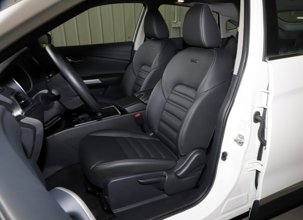 打开车门之后也能够感受到诚意,作为一款定价非常低调的轿跑SUV,东风日产启辰T90内饰用料算比较厚道,大量的软包材质毫不吝啬,台面上还有液晶仪表盘和大尺寸镶嵌导航屏幕,空调控制区域也是触控面板。得益于较长的轴距,虽然车顶溜背比较夸张,不过后排乘客头部空间并没有受到影响。