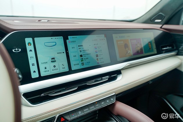 星越L上将中控屏和副驾驶娱乐屏进行了连接,形成了整体长达1米的大屏幕,官方也称之为“米屏”,它相当于两个特斯拉Model Y的中控屏尺寸。米屏的运用使得整个车内的科技感和高级感得以提升,视觉效果上也更为清爽。同时车机内部的功能比较丰富,具备导航、蓝牙音乐、娱乐、车辆设置等功能,系统使用也足够流畅。