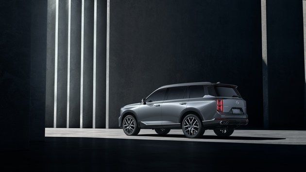 车身侧面线条锐利,腰线和裙线的设计充满力量感,搭配双五辐式轮圈,看起来霸气十足。尺寸上,新车长宽高分别为4980/1950/1780毫米,轴距为2920毫米。