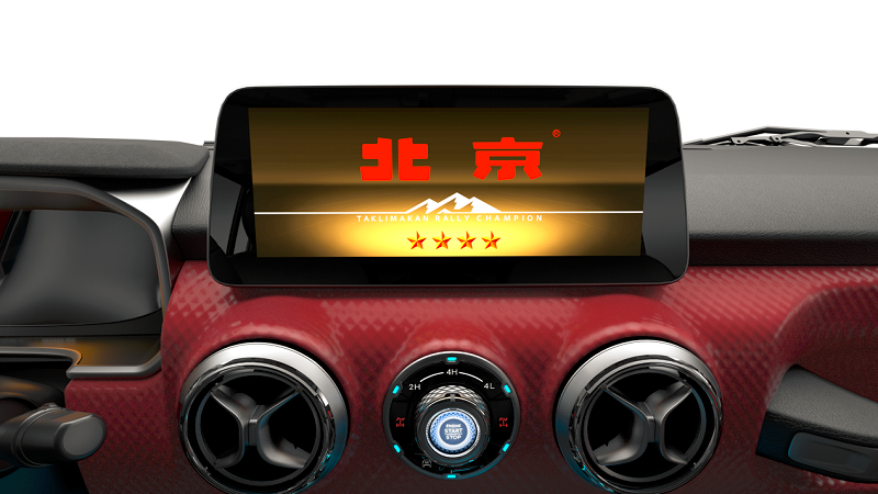 如果说专属外形让其成为流动的大漠风景,一路收割注目礼,那么车内细节的雕琢则时刻在提醒车主铭记冠军荣耀。与常规的功能型中控和液晶屏不同,新一代BJ40环塔冠军版的显示屏氛围感拉满,液晶仪表采用环塔专属主题,中控同样拥有专属画面,“满屏荣耀”让人瞬间破防。