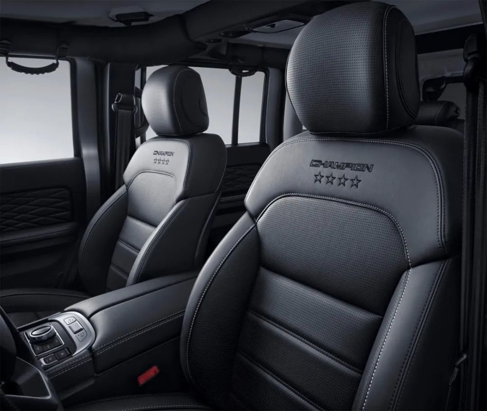 除了“开机即荣耀”,环塔专属标识也触手可及。新一代BJ40环塔冠军版的副驾手套箱部位带有环塔图案和“CHAMPION”标识,座椅刺绣着“CHAMPION”字样和四星图案,每处细节都仪式感满满。值得期待的是,每一台“暴风”的编号也是唯一的,专属感给得很足。