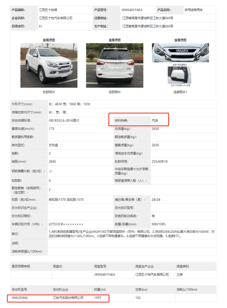 在全新一代的江西五十铃D-MAX正式上市之后,我们也对新一代的牧游侠充满期待,而在最新一批工信部新车申报目录中,五十铃牧游侠也终于申报了新车型,不过这一次申报的并不是全新换代款,而是换装了汽油发动机的版本。