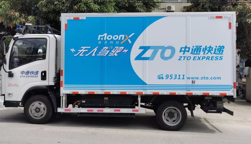 牧月科技联合中通快递共同研发的自动驾驶物流车,图片来源:牧月科技