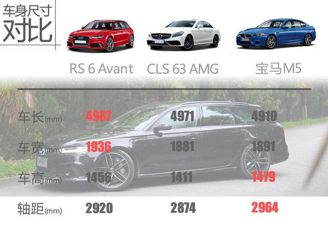 事实上能与奥迪RS 6 Avant对标的竞品车型似乎还没出生,虽同价位中多数车型动力上与其相差无几,但碍于旅行车的特性可谓是一招鲜。所以编辑依旧选举了铁三角中性能车的代表与奥迪RS 6 Avant尺寸一较高低。可以看到,RS 6 Avant的车身宽度与长度占有很大优势,而对于兼顾实用性的旅行车来说其车身高度与轴距数据并不抢眼。