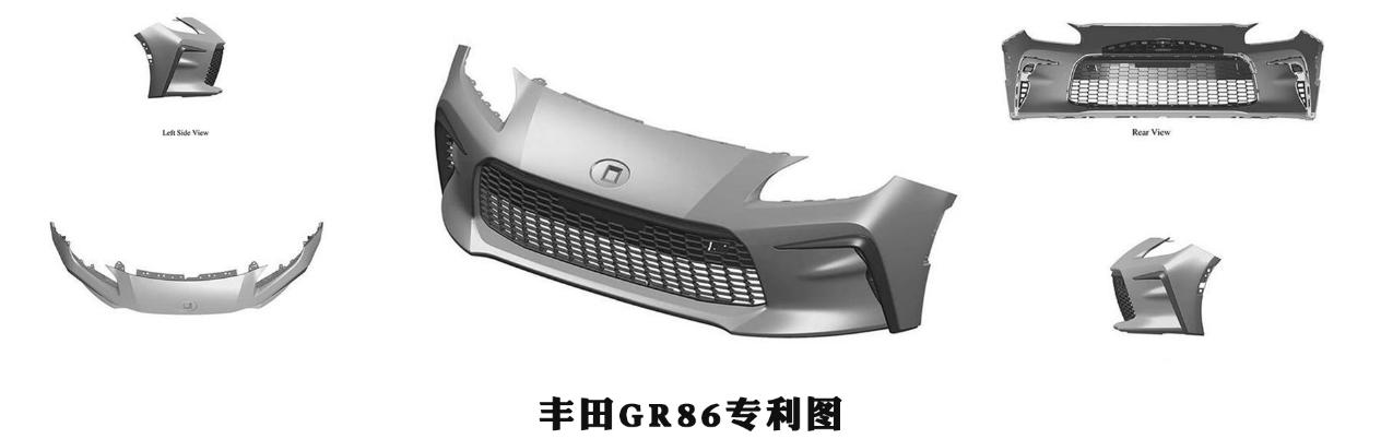 从目前曝光的渲染图和专利图来看,新车整体造型与新款斯巴鲁BRZ高度相似,但相比斯巴鲁BRZ,丰田GR86拥有更大的前脸进气格栅,格栅呈梯形,以蜂窝状内网填充,两侧的倒"L"形装饰微微凸出,内部同样设计了进气口,散热性和运动气息更强。除此之外,TNGA平台低重心的特性使得新车的车头更加扁平,进一步增强了新车整体的竞技感。