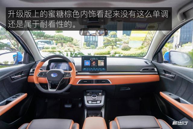 如果你问到本次升级中最大的变化是什么,那么最大的变化莫过于将全黑的内饰升级成蜜糖棕色的内饰了。此前的 e2 内饰是全黑以及黑红两种内饰,现在增加了蜜糖棕色内饰。新款上的内饰就比较符合年轻人的口味,与动感新潮的外观搭配更加合适。营造极具动感的氛围,对于这个颜色的内饰,我个人还是非常喜欢的,相对于全黑内饰比较耐看。