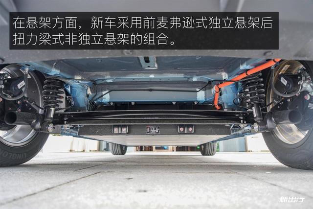 在悬架方面,e2 升级版搭载前麦弗逊独立悬架后扭力梁式非独立悬架的组合,整体表现不亚于十万级别里的同等车型。在过一些坑洼路面时悬架的纵向摆动能够到一个恰好的位置,摆动幅度不会过多也不少,带有一种“Q 弹”的感觉。