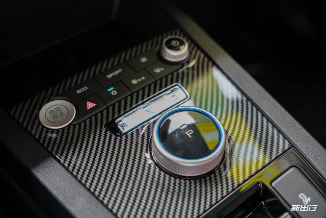 在换挡区域中,将原来的黑色饰板升级为仿碳纤维纹理的饰板,让整体内饰看着更加运动,有质感。