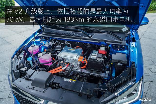 对于一台十万元的精致小车,开起来到底怎么样?这是很多朋友提出的疑问。首先我们来回顾 e2 升级版的动力参数,相较于现款车型,该车在动力上没有发生变化,该车同样搭载最大功率 70kW,最大扭矩 180Nm 的永磁同步电机,0-50km/h 的加速成绩在 3.9 秒。