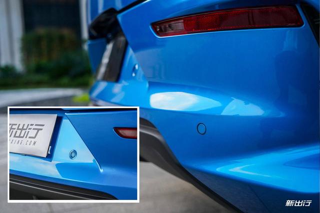 在车辆尾部还增加了两颗雷达,原来的雷达是在车辆尾部的左右两侧,新增的在中间牌照的两侧。探测距离更远,范围更加广阔,扫除后方视角盲区,在雨天的时候探测会更加精准。