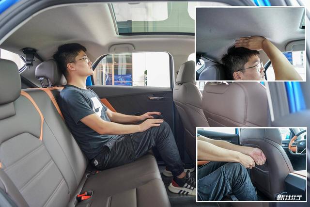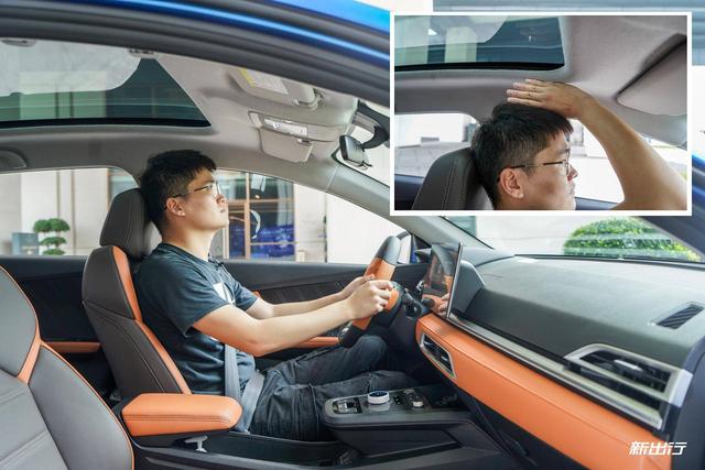 乘坐空间方面,身高 178cm 的匠小白坐在驾驶位将坐姿调到合适位置后,头部空间大概还有四指的距离;保持此前前排座椅的位置,同一乘员坐到后排头部同样有四指,腿部空间是两拳以上。