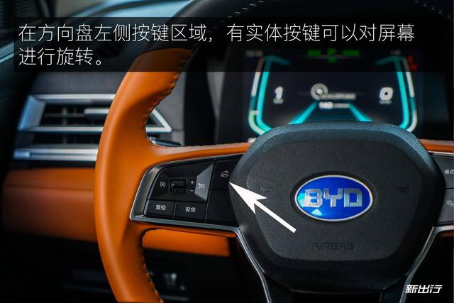 全系升级为窄边框 10.1 英寸旋转 Pad,可以实现横屏和竖屏两种状态。在方向盘右侧按键区域以及中控屏内下方位置可以旋转。