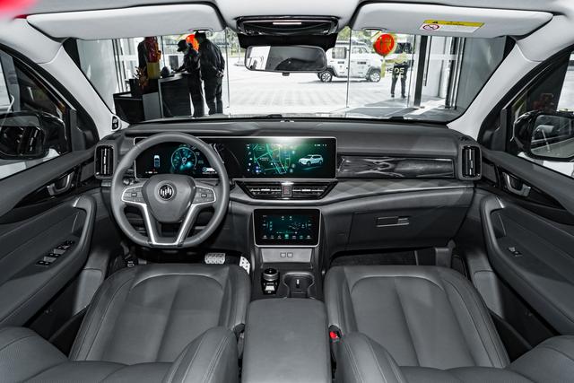 在车辆内部,威马W6配备了三块超大屏幕,其中12.3英寸的悬浮式中控屏幕与12.3英寸全液晶数字仪表盘共同组成双联大屏,配合底部8英寸i-Touch车控屏。分别掌管着车辆的信息呈现平台、信息控制平台、车内环境控制平台,对车辆信息进行了视觉化分区。