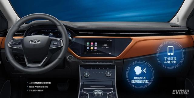 相较于外观,艾瑞泽e的内饰变化非常大,中控台更加精致和现代化,三个液晶屏的设计符合现在新能源车趋势;用料等方面也彰显了舒适和豪华,凡用手能触碰到的地方基本都运用了软性材质,棕色品质材料+缝线的运用让内饰的豪华感越级。