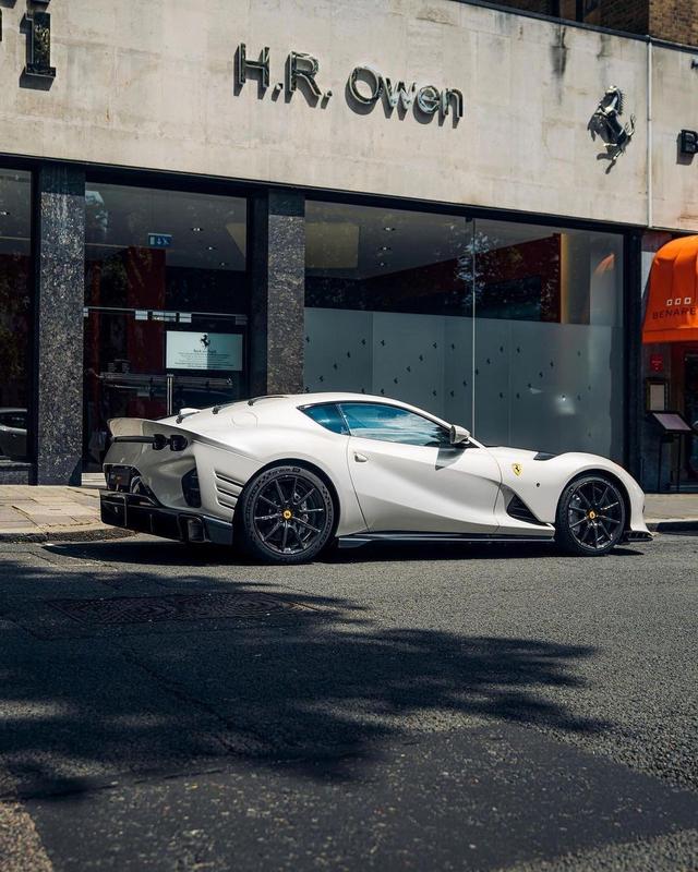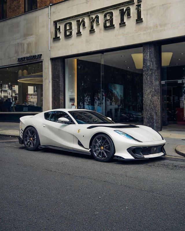 外观方面,新车在法拉利812 Superfast版的基础上,换装了全新设计的空气动力学套件,而且大部分部件采用了碳纤维材质,不仅达到轻量化的作用,也让车辆的视觉冲击感更强。