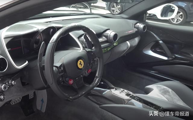 内饰方面,812 Competizione基本延续普通版812 Superfast设计,不过同样为了达到减重目的,新车重新设计了轻量化门板,中控区域新增了H型架构。