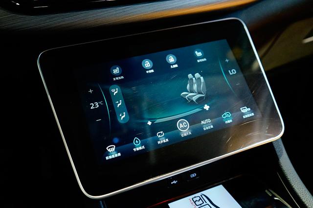 空调控制系统被独立出来,液晶触控面板(i-Touch面板)布置在挡杆台前方。除了能够对空调和座椅加热控制,中控锁和儿童锁也布置于此。这个面板的位置比较低,行车中的盲操作不够便利,但不要忘记还有语音控制。