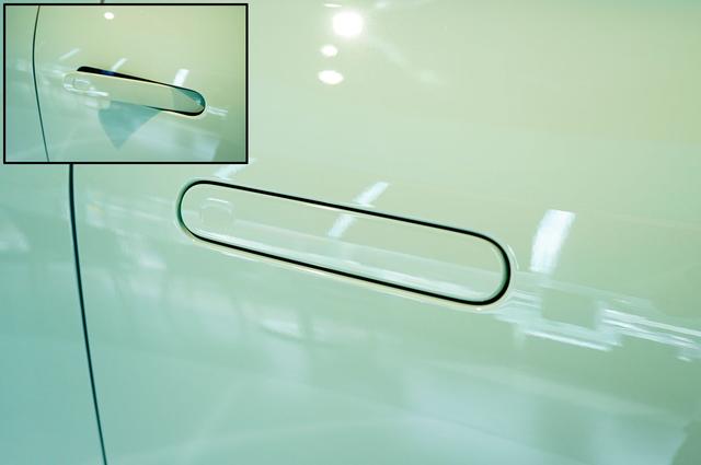 门把手依然是隐藏式布局,车身同色也不会破坏整体效果,依然采用单边弹出方式,全系标配驾驶位无钥匙进入,如果能够升级成前排就更完美了。