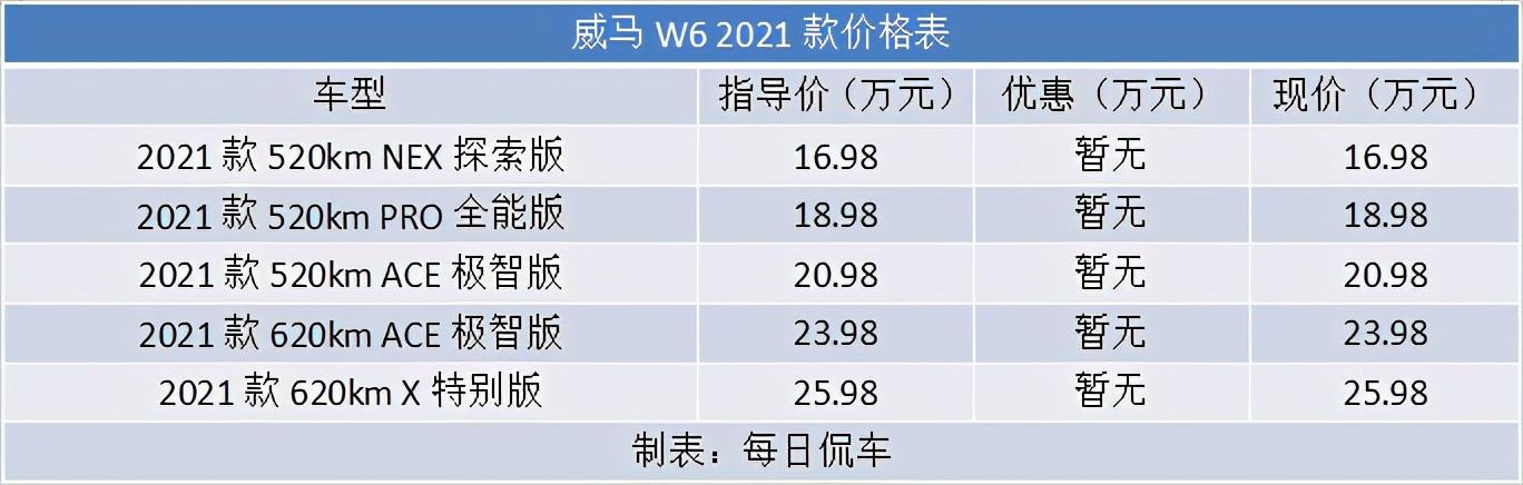 从去年到今年,电动车开始大规模走进普通用户,蔚来、小鹏等新势力都取得了不俗的成绩,威马作为“早起者”,在EX5取得了一定销量后,后续的EX6却因为各种原因很难突破。我们认为W6可以看做是EX6的升级产品,在底盘和车架上有一定的通用性,不过W6显然在续航里程、内外精致度、车机体验、驾驶辅助各方面都有显著提升,最重要的是价格还大幅下探,让威马品牌“高性价比”的特色再次凸显。