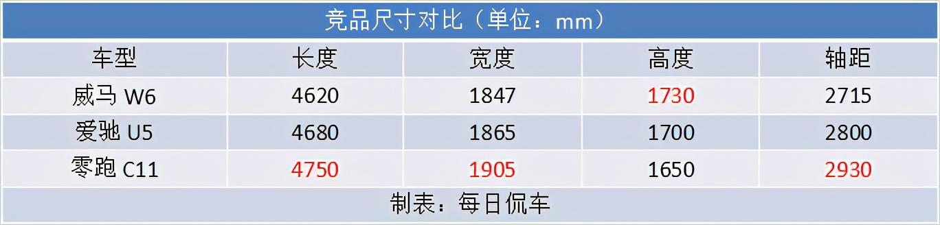 车身尺寸长宽高分别为4620/1847/1730mm,轴距为2715mm。尺寸介于EX5和EX6之间,轴距与EX6相同,但视觉效果比EX6更显大。与同级中型SUV相比,W6的轴距和长度都比较短,但高度比较充分,我们认为它划分在紧凑级SUV更适合些。
