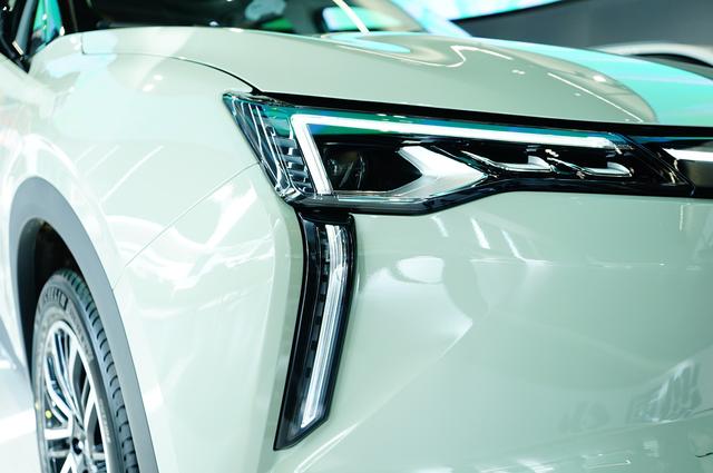 头灯整体造型较为扁平,顶部的日行灯带来呈直角弯折,正好与水平和垂直的灯带自然衔接,让整个车头的轮廓感格外鲜明。主灯组采用近远光一体布局,LED光源,除了入门车型都支持自动点亮和自适应远近光。