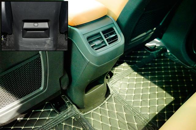 提供后排地台式出风口,下方配备了USB接口和储物格,方便手机充电时存放。全平的地板能够让后排乘客的腿部自如活动。