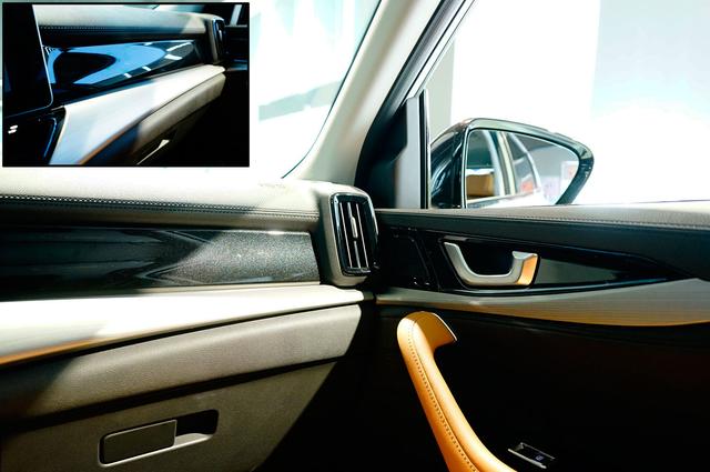 车厢用料提升了很多,上层为皮质包裹,中间夹层部分是亮黑色烤漆饰板,下方为银色拉丝面板,多种材质搭配带来良好的层次感,精致度大为提升。