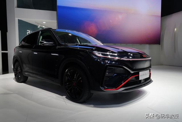 根据前方同事传回来的照片,本次亮相的是一台黑色的MARVEL R,相比此前亮相的车型,这台黑色的MARVEL R看起来更加运动大气,又略带一丝沉稳格调。外观方面,MARVEL R采用“环宇之光”的设计概念,营造科幻氛围。