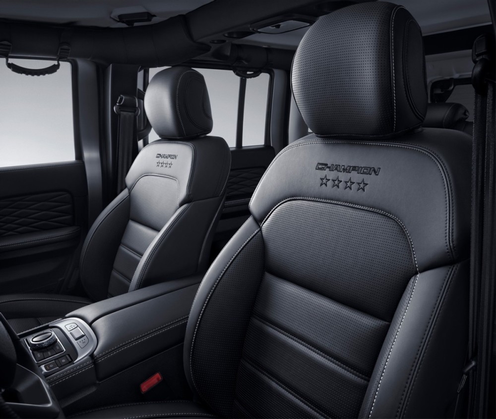 BJ40环塔冠军版方盒子的硬朗车身造型不变,五孔式进气格栅配合圆形大灯,散发出强烈的越野气息。新增的全新暴风灰专属哑光漆色野性十足,专属拉花、冠军徽标硬朗稳健、辉煌星级备胎罩、座椅刺绣、环塔专属主题显示屏,车内外随处可见的环塔印记辨识度超高,彰显了专属身份象征。尾灯造型与前大灯呼应,银色装饰的后保险杠提升了车辆精致度。