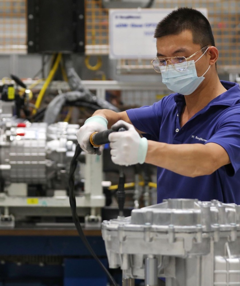 博格华纳武汉工厂产业工人与工业机器人并肩工作。 长江日报记者陈亮 摄(资料图片)