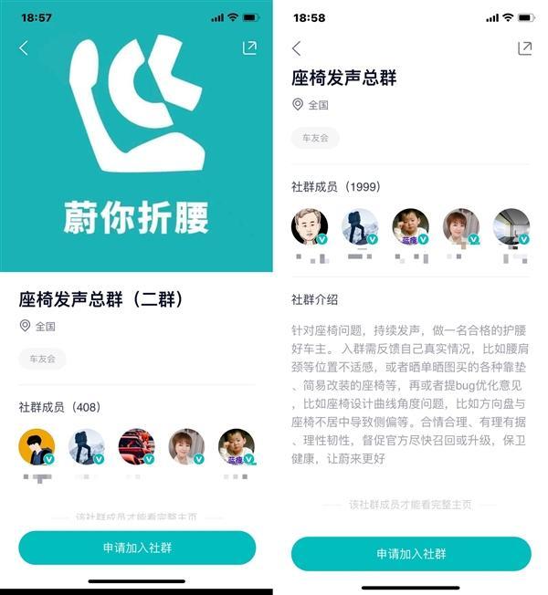 从蔚来APP了解到,目前已经建立了相关的维权社区群,名为“蔚你折腰”。