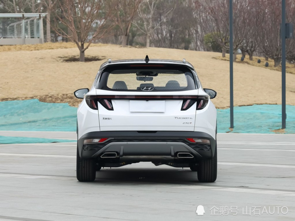 第五代途胜L外观的第一感受就是充满时尚感,整体设计理念与新奇骏相同,车头部分采用分体式大灯造型,不同的是第五代途胜L的日间行车灯更协调,“鹰翼”式造型除了辨识度高以外,还完美地和进气格栅形成一个整体,看起来没有违和感,照明大灯组则是设计在原有的雾灯位置,显现不出刻意分割的意思。