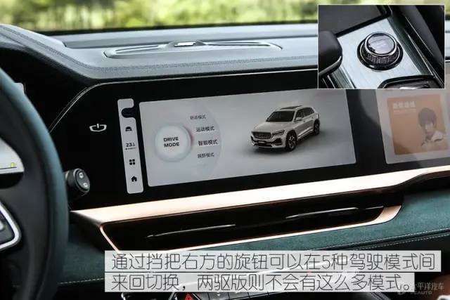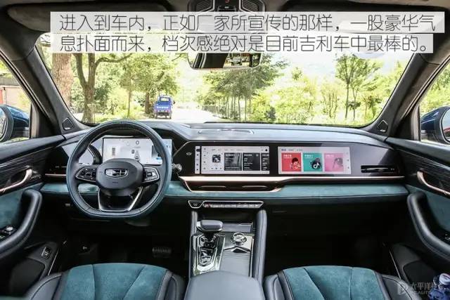 吉利星越L在内饰中大量地采用了Alcantara材质,在前挡风玻璃上还配备了HUD抬头显示系统,并且还搭载了豪华车型上才会见到的中置BOSE音响。中控台上的分体式“带鱼屏”长度达到了1m,由一块玻璃面板将两块屏幕封装在一起,这样的设计一定是副驾驶喜闻乐见的,因为它可以让副驾驶的乘客也可以享受车载娱乐系统。而换挡区域的设计风格与星瑞基本保持了一致,游艇式的电子档杆也并没有缺席。