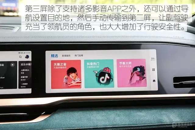 车内最大的亮点就是三屏设计,各司其职但是又相互连通,不仅有满满的科技感,而且娱乐性和实用性还是相当之高。