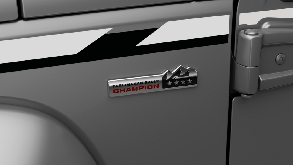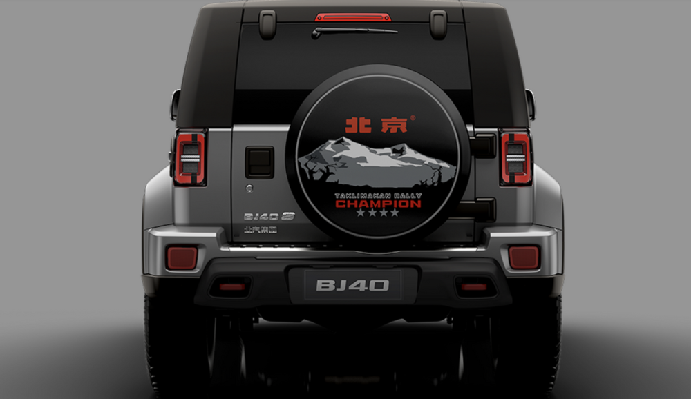 外观方面,BJ40环塔冠军版车门上还有专属拉花、冠军徽标,配合“TAKLIMAKAN RALLY”字样,四颗星以及“北京”红色LOGO的搭配,进一步提升车尾识别度。